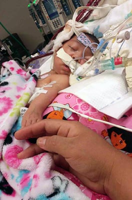Julissa was in full respiratory arrest, requiring intubation (placement of a plastic tube into the trachea to maintain an open airway). When intubation failed, Julissa was placed on extracorporeal membrane oxygenation (ECMO), a pumping device that provides cardiac and respiratory support.