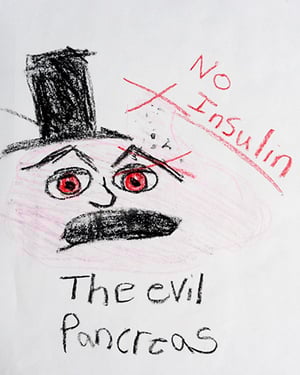 The most surprising theme she found in the drawings was split faces. In other words, several children depicted themselves half as they are and half as diabetes.