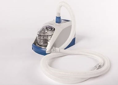 El sistema de humidificación incluye un generador de flujo, un calentador y un adaptador de oxígeno. Juntas, las partes suministran aire tibio y húmedo y oxígeno al tubo traqueal de su hijo. Este aire ayuda a mantener las secreciones poco densas. Las secreciones en los pulmones pueden bloquear el tubo traqueal si son demasiado gruesas.