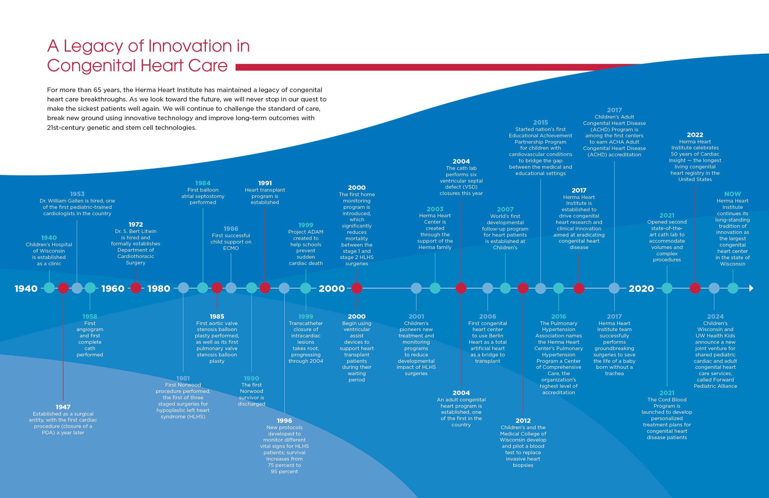 - 2004 Children’s Wisconsin establishes the Adult Congenital Heart Disease Program, one of the first in the country