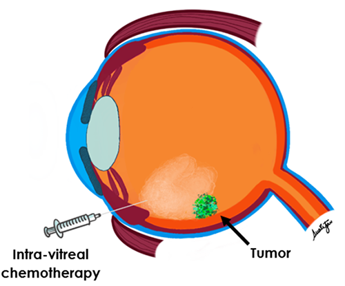 Intra-vitreal chemotherapy is when chemo is injected into the gel like space inside the eye. This gel like space is called the vitreous. The vitreous does not have any blood vessels. This chemo goes right to the tumor. This helps protect the rest of the body from the chemo.